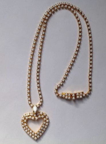 Title (ebay affiliate link): Vintage White Milk Glass Rhinestone Heart Necklace Pendant Valentine''s Day