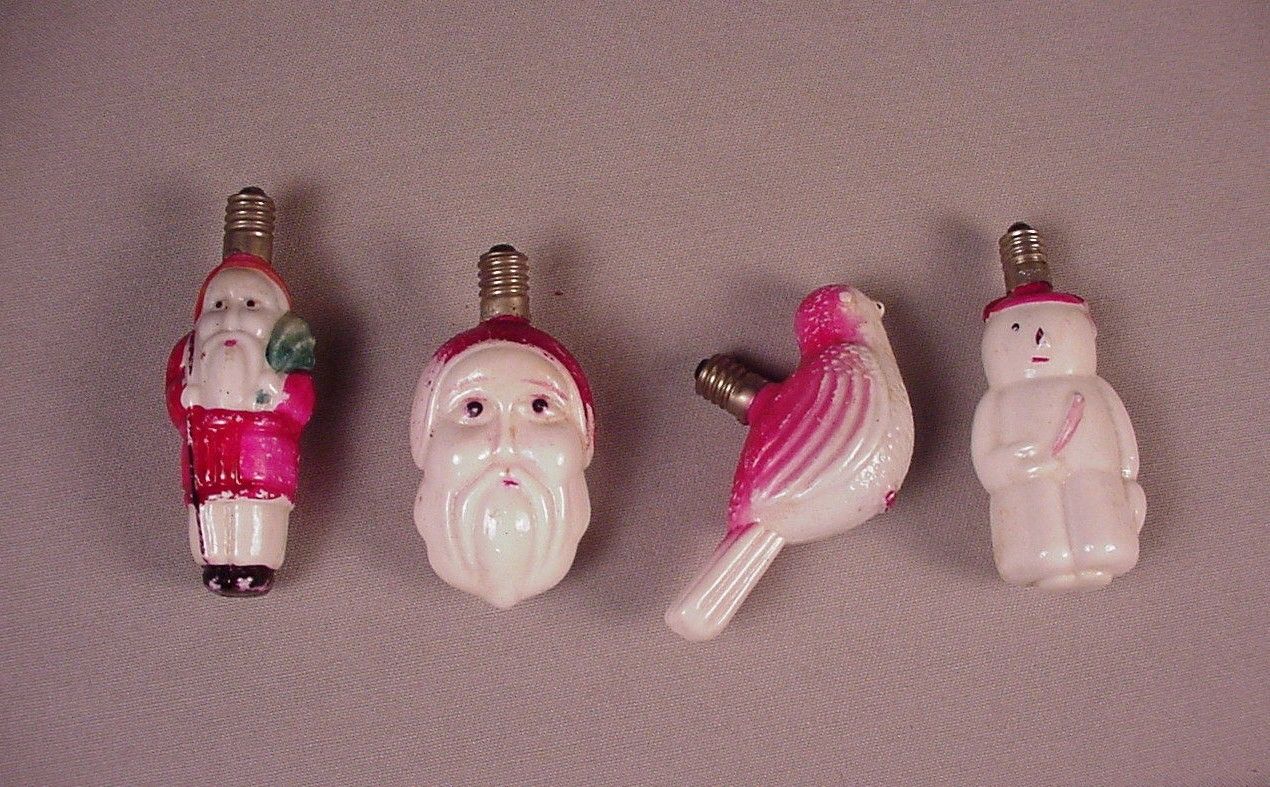 Vintage Christmas bulbs C-6 lights Santa Snowman Bird bulbs milk glass figural
