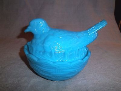 Antique Vallerysthal Turquoise Blue Milk Glass Robin Bird On Nest Covered Dish