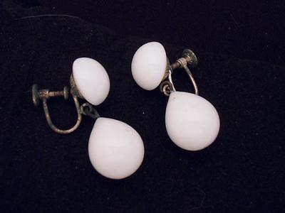 VINTAGE - White Milk Glass Round & Teardrop Drop EARRINGS - Screwbacks
