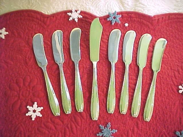 Title (ebay affiliate link): 8 Gorgeous SERENADE Butter Spreaders & Master Knives~Harmony House Plate 1944