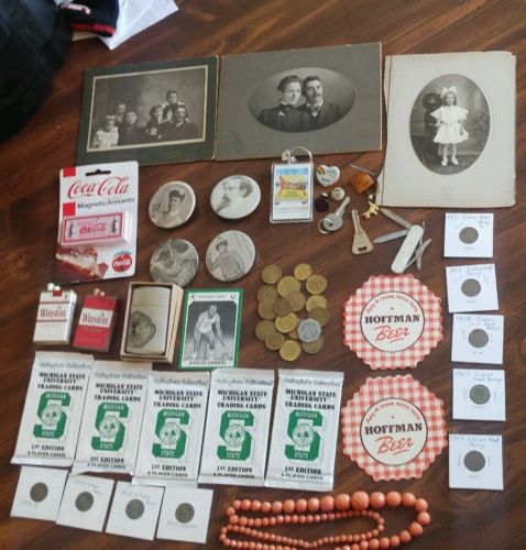 Title (ebay affiliate link): Vintage junk drawer lot Indian head penny coca cola lighters cabinet photos mix