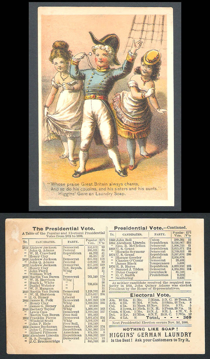 Presidential Vote 1824-1876:Vintage Naval Advertising Trading card c.1879