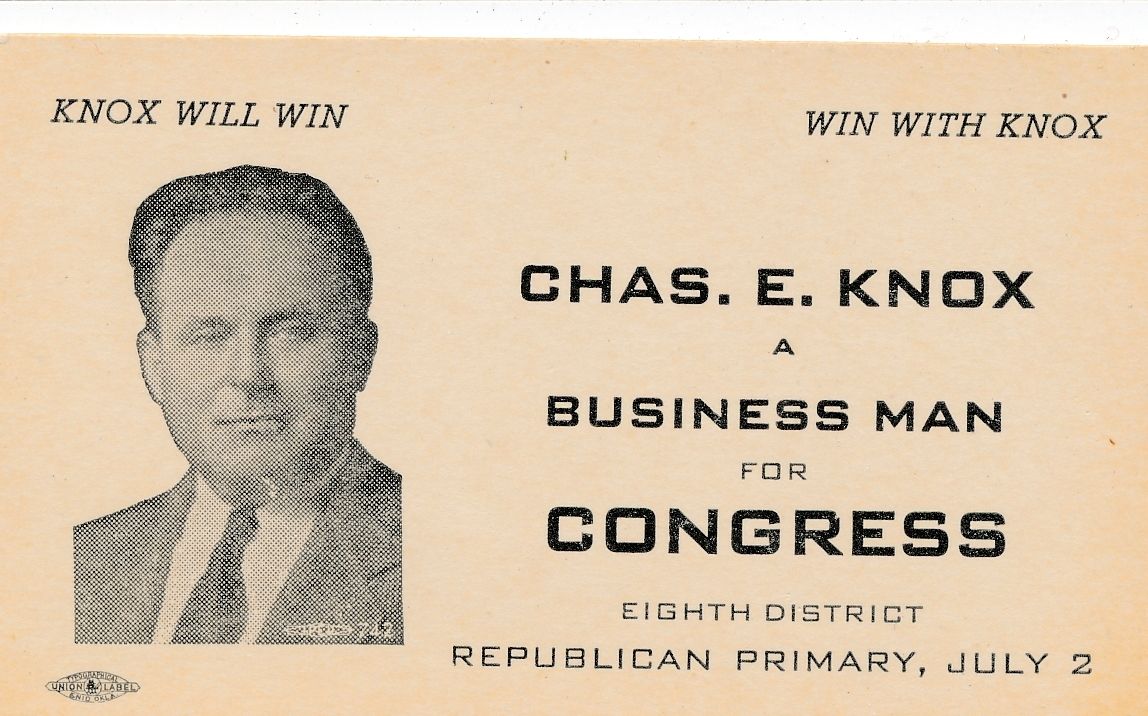 Title (ebay affiliate link): 1938 Charles E. Knox for U.S. Congress palm card Oklahoma OK