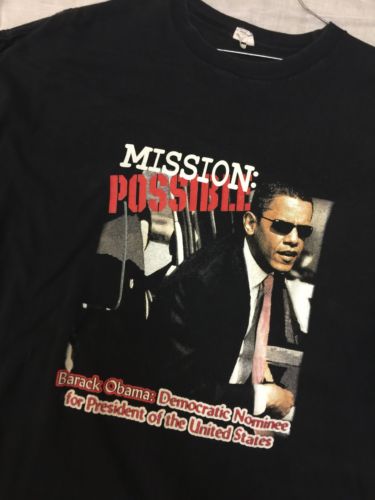Title (ebay affiliate link): Barack Obama 2008 Presidential Campaign T-Shirt Mission Possible Democrat XXL 2X