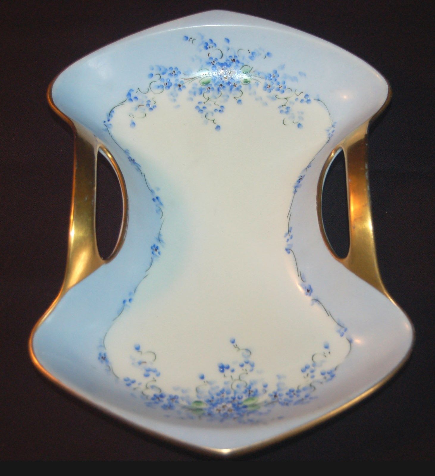 BEAUTIFUL ANTIQUE STOUFFER HANDLED PLATE - HANDPAINTED WITH BLUE FLOWERS