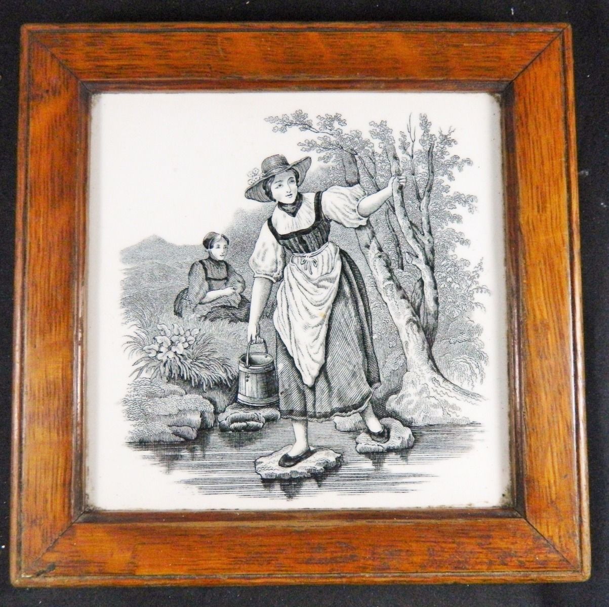 1870''S MINTON WORKS STOKE-ON-TRENT PORTRAIT TILE IN FRAME RUSTIC SERIES-101802
