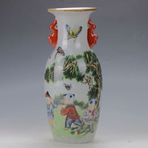 Famille Rose Porcelain Hand-painted Butterfly & Doll Vase W Qianlong Mark C160