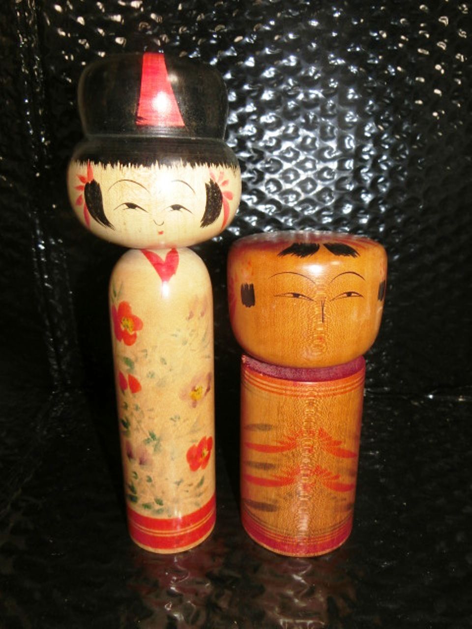 2pcs Antique Kokeshi dolls Yamadera Kazuo Ishiyama signed 12.5/18.5cm A0106