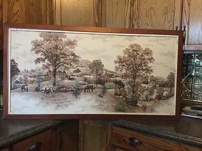 Raised Fabric Rural Print In Frame 48"x25.5" Home Art