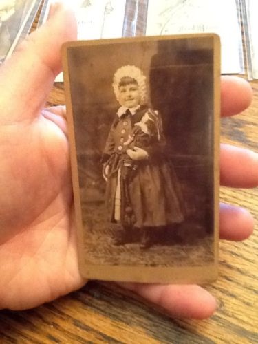 Title (ebay affiliate link): ANTIQUE CABINET PHOTO GIRL w BEAUTIFUL ANTIQUE DOLL LARGE RUFFLED BONNET COAT