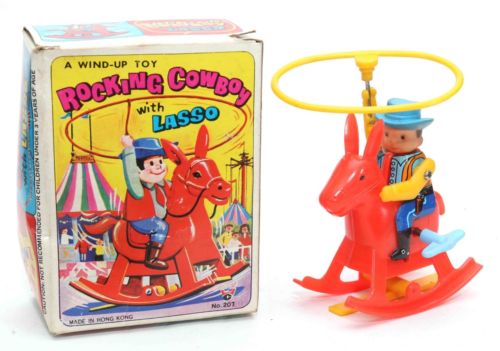 Title (ebay affiliate link): RARE VTG 70''s Hong Kong ROCKING COWBOY with LASSO Wind Up Plastic Toy WORKS +BOX