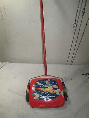 Antique Vintage Toy Carpet Sweeper SUZY GOOSE Really Sweeps! Tin, Wood Handle