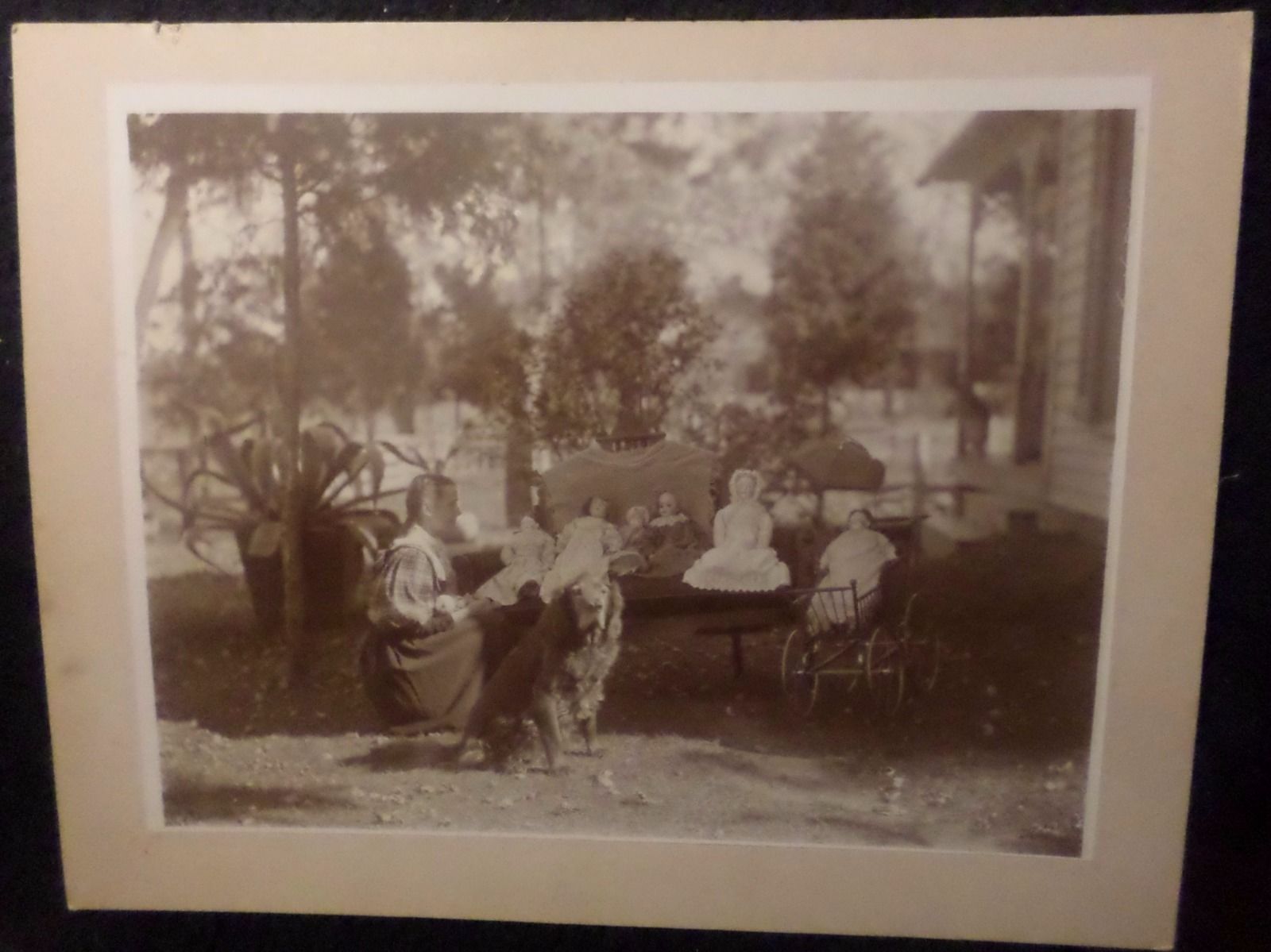 8 x 6 ANTIQUE PHOTO IDENTIFIED GIRL WITH DOLLS BUGGY AND DOG LACON ILLINOIS