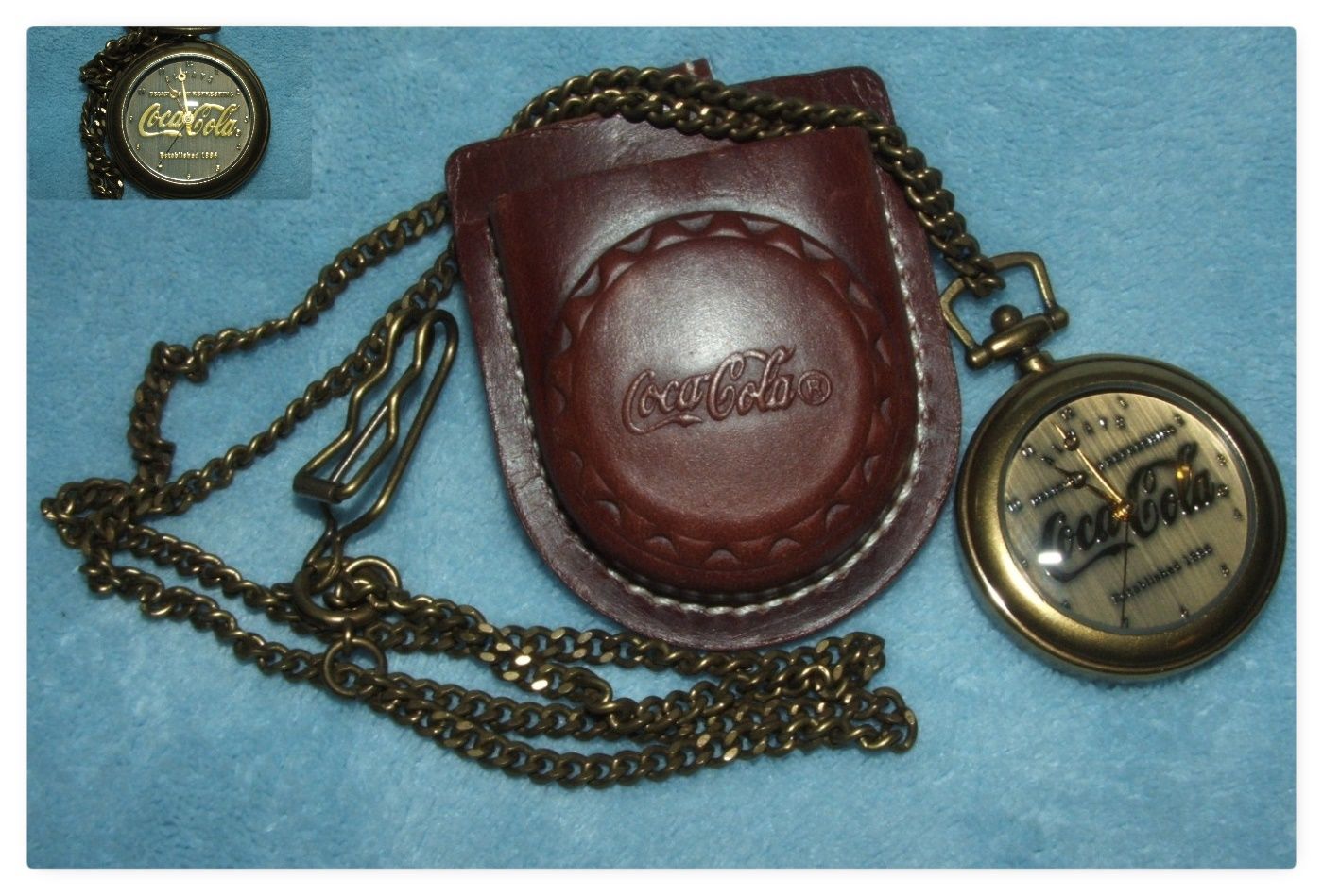 Title (ebay affiliate link): Rare 1997 Coke Coca Cola Pocket Watch & Tooled Leather Belt Sheath Pouch Case