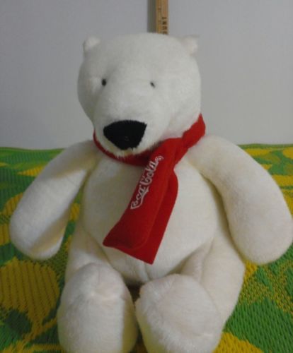 Title (ebay affiliate link): Coca Cola Polar Bear Plush 10" Sitting White With Red Scarf 2007 Stuffed Animal