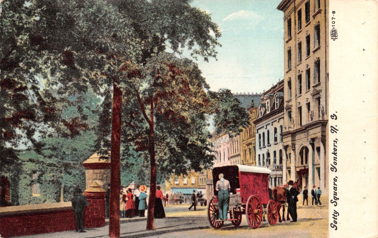 Antique postcard: Getty Square, Yonkers, N.Y., Street Scene, horse &buggy, bldgs