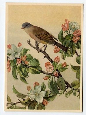 Vintage Russian Postcard Birds of the Soviet Union - Bohemian Waxwing 1960 RAR