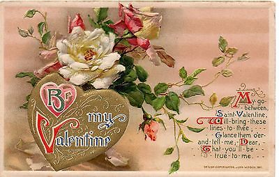 Title (ebay affiliate link): White & Pink Roses with Gold Valentine Heart 1911 Winsch Vintage Postcard