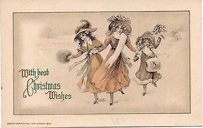 Pretty Girls dancing in the Snow a 1914 John Winsch Christmas Vintage Postcard