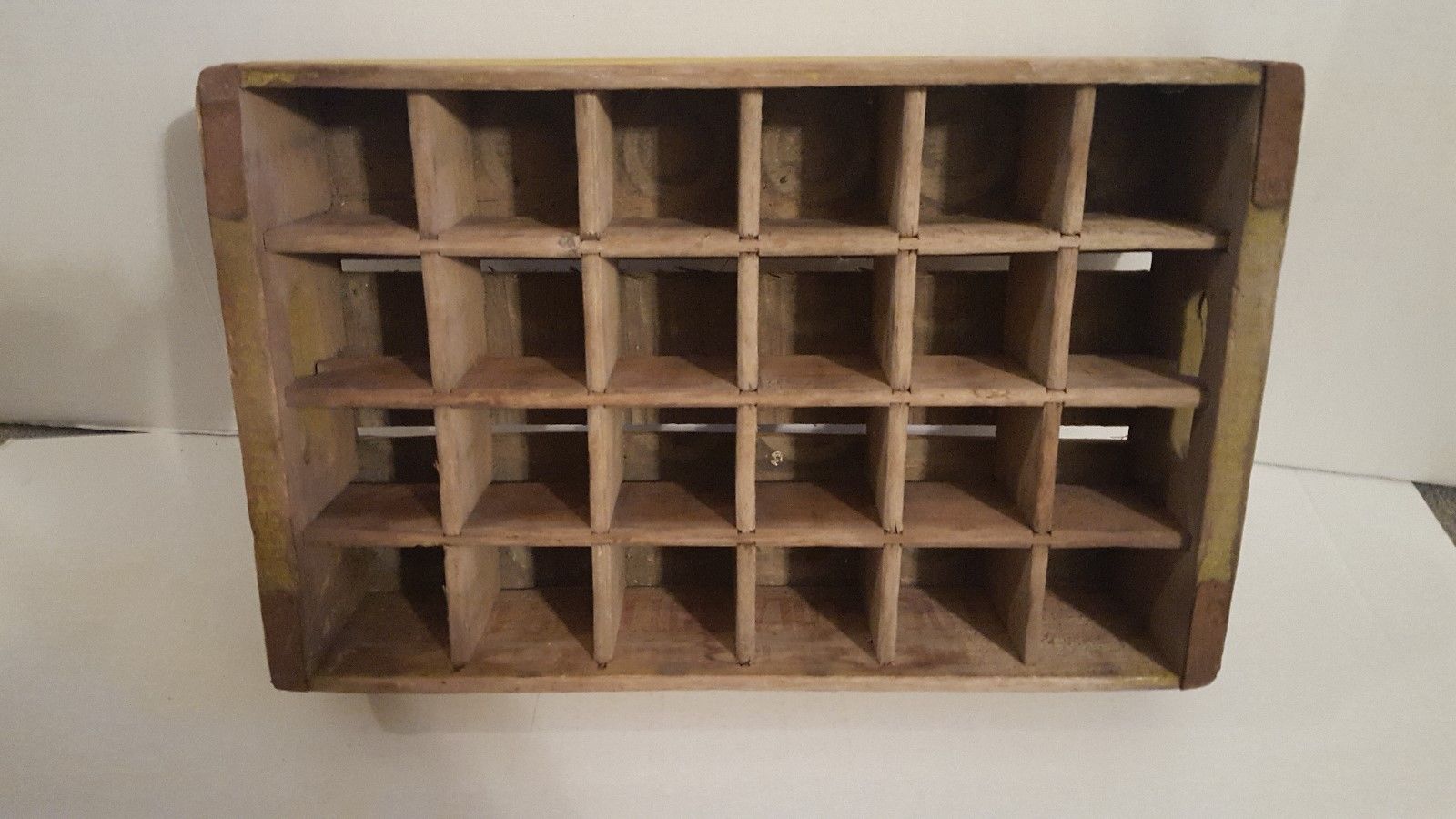 VINTAGE WOOD CRATE, 24 Section, Soda Bottle, stained, antique, collectible
