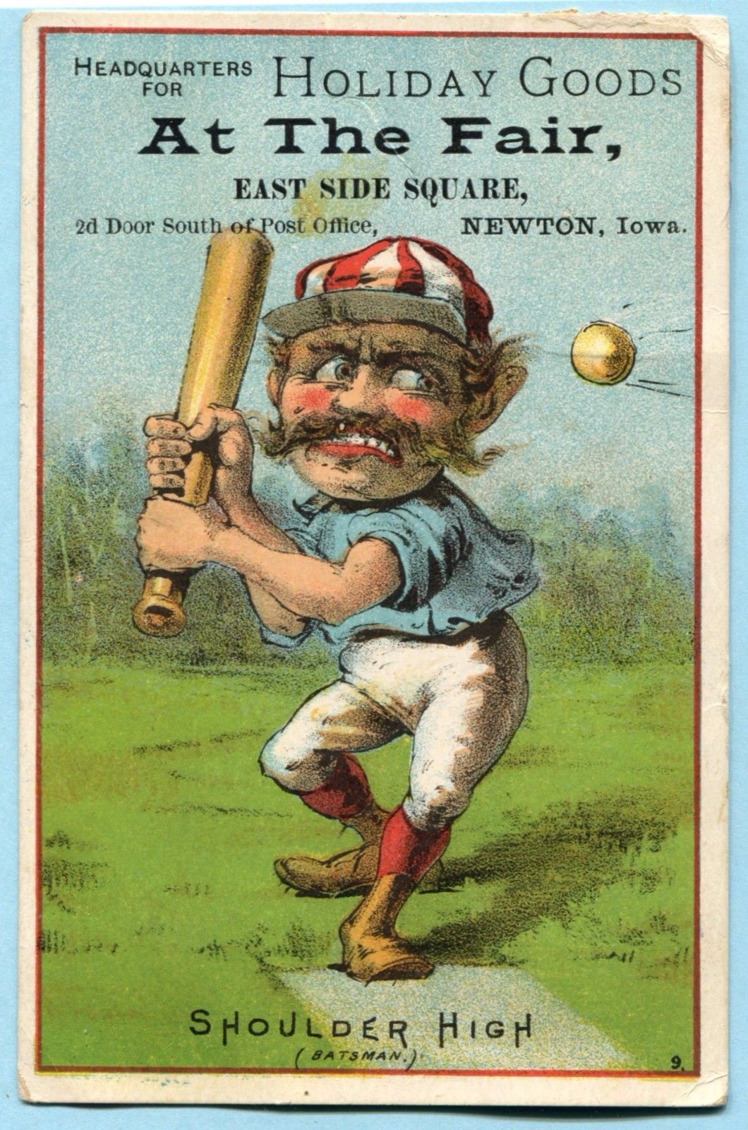 Title (ebay affiliate link): Antique 1880s SHOULDER HIGH BATSMAN Baseball Theme Trade Card NEWTON IA Dixson