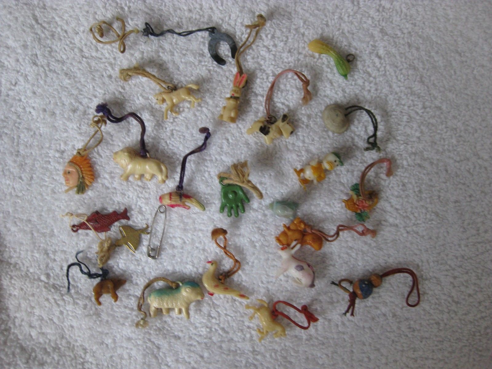 Title (ebay affiliate link): Lot of 22 Vintage 1940s CHARMS Miniature Plastic Cracker Jack Gumball Cereal