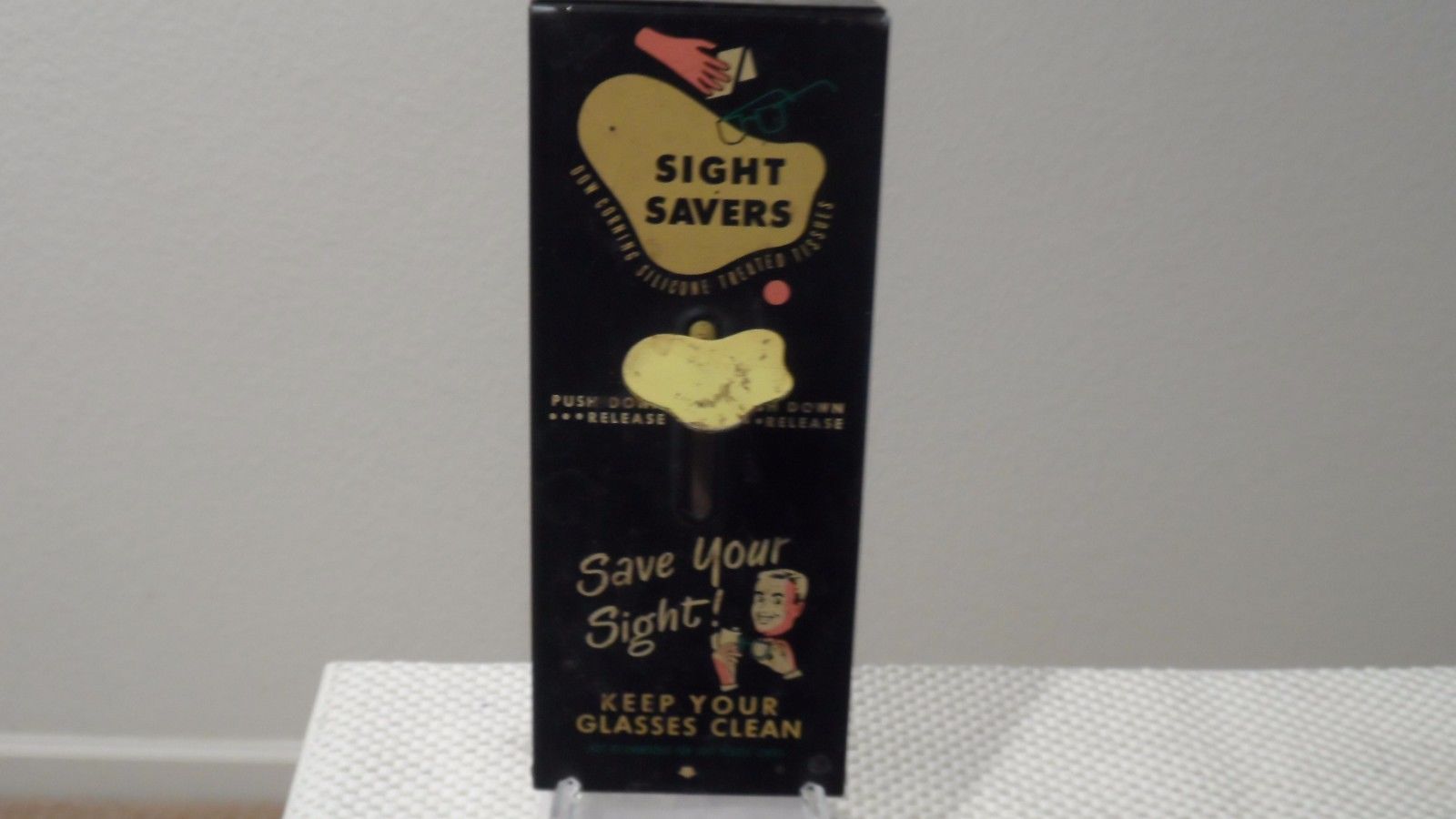 Title (ebay affiliate link): VINTAGE SIGHT SAVERS DOW CORNING SILICONE TREATED TISSUES WALL MOUNT DISPENSER