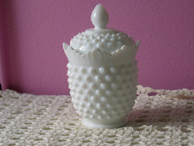 FENTON HOBNAIL MILK GLASS COVER CANDY JAR 3688