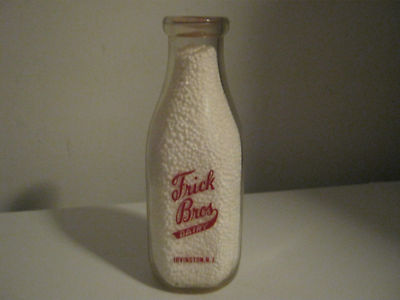 milk bottle frick bros.dairy irvington,n.j.qt sq red py