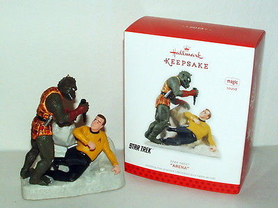 Title (ebay affiliate link): 2000s HALLMARK MAGIC SOUND STAR TREK ARENA KEEPSAKE ORNAMENT w GORN MINT BOXED