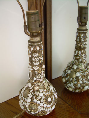 Folk Art MEMORY JUG Lamp Milk Glass Button Bead Jewelry