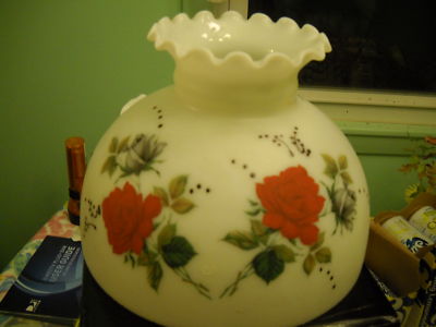 Large Base White Milk Glass Red Rose Lamp Shade 9 7/8"