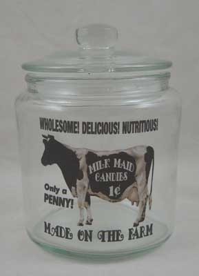 MILK MADE CANDIES SMALL GLASS COUNTER JAR