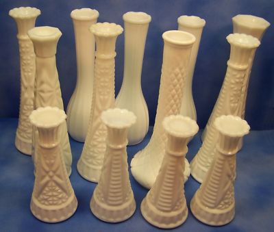 Bakers Dozen Lot of Assorted Milk Glass Bud Vases