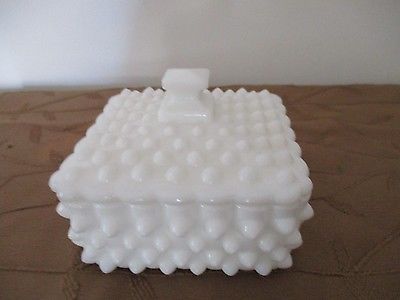 Title (ebay affiliate link): Vtg Fenton? White Milk Glass Hobnail Candy Nut Trinket Jewelry Covered Dish Lid