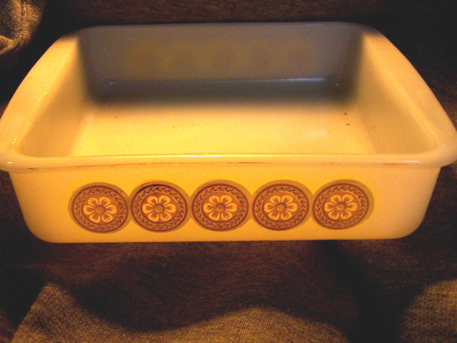 Glasbake-White-Milk-Glass-flower-Design-8-in-square baking dish j2428 #17