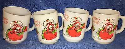 4 Anchor Hocking 1980 Milk Glass Strawberry Shortcake Mugs Cups Retro!