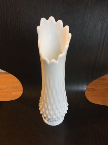 VINTAGE HOBNAIL MILK GLASS VASE SWUNG STRETCH 12"