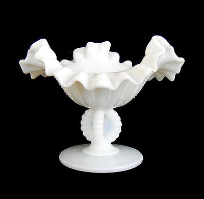Title (ebay affiliate link): VINTAGE MILK GLASS FLUTED PEDESTAL DISH WITH UNUSUAL BASE 5" TALL