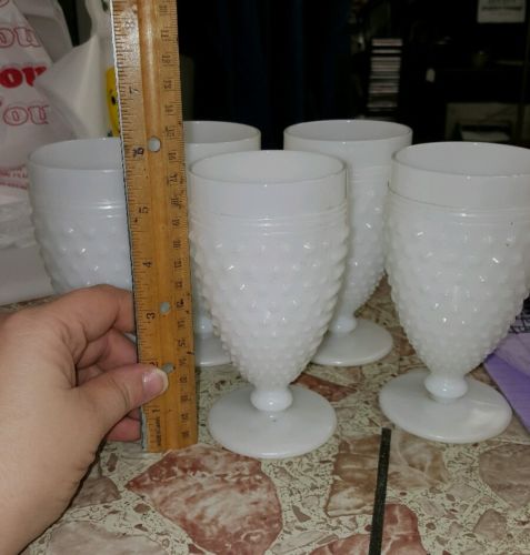 Vintage Set of 5 Milk Glass Hobnail Goblet Footed