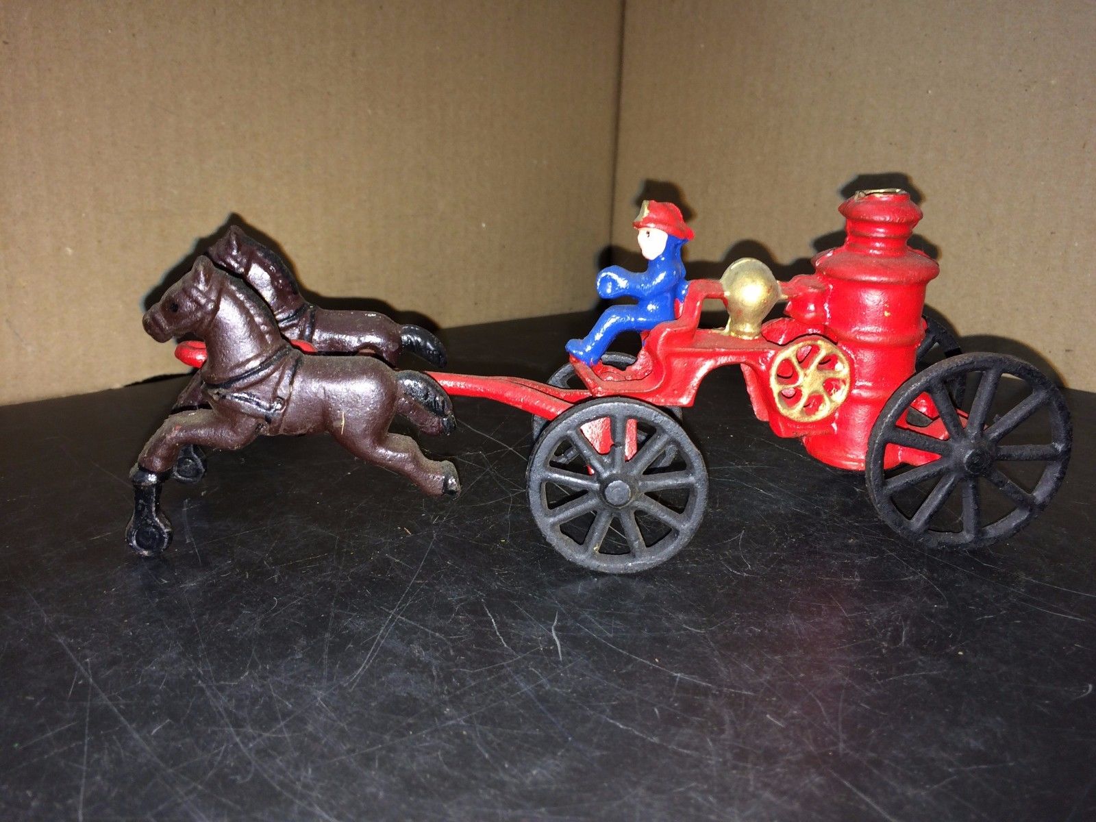 Title (ebay affiliate link): Vintage - Cast Iron - Horse Drawn Fire Engine Pumper with attached Driver -small