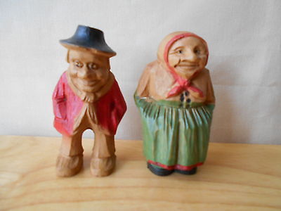 Vintage German Wood Carved Old Man and Woman Figurines - Excellent Condition