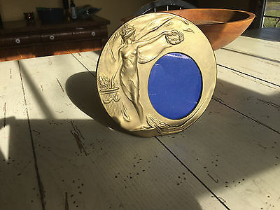 VINTAGE BRASS ART NOUVEAU DEATH PENNY PLAQUE PHOTO FRAME