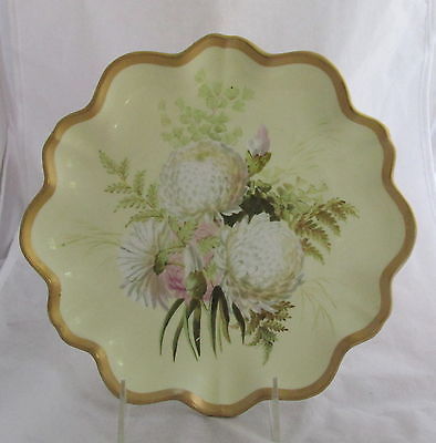 Antique Old Paris Porcelain Scalloped Plate Hand Painted Chrysanthemums Flowers