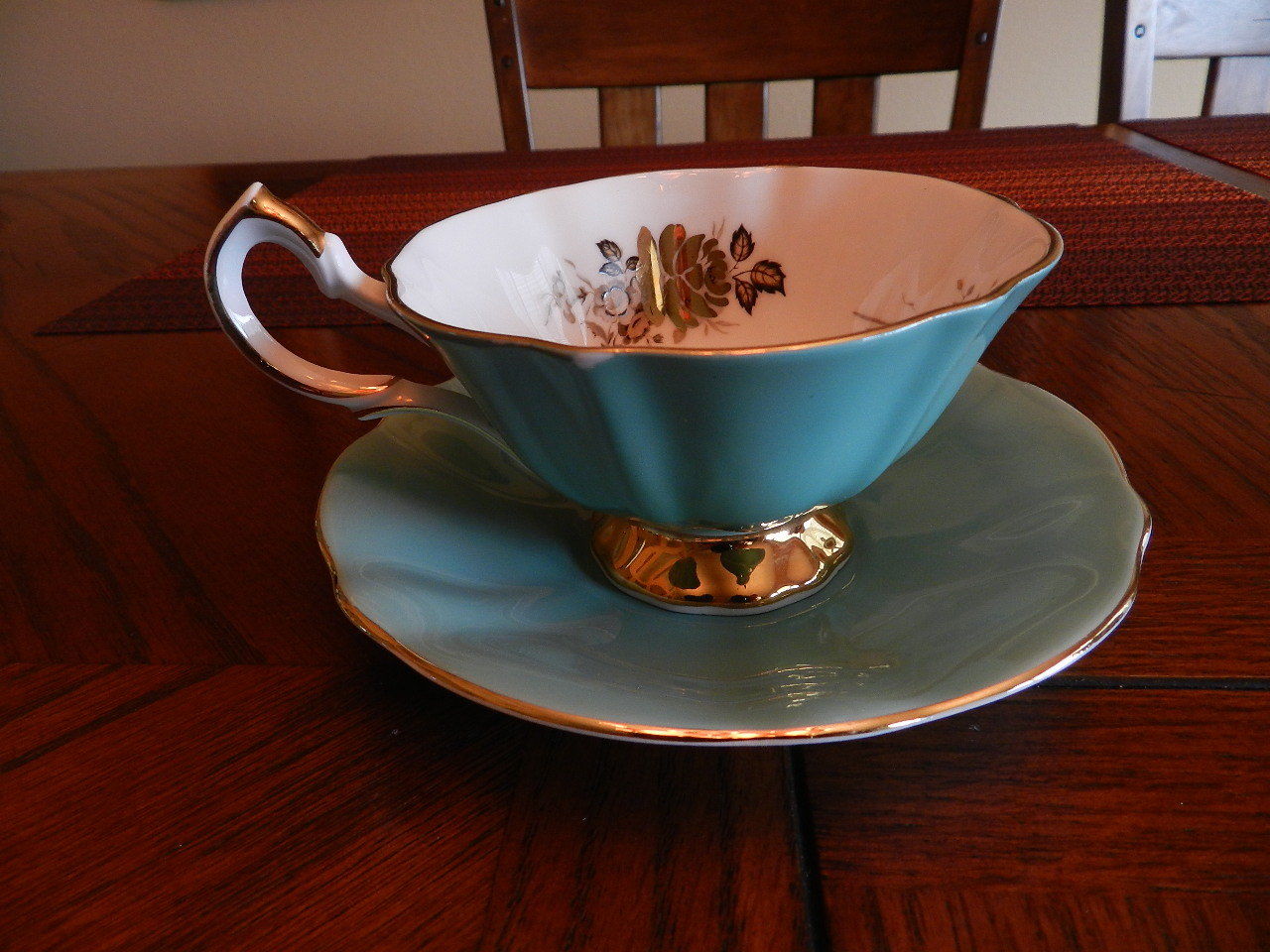 Queen Anne Cup & Saucer Gold Roses England