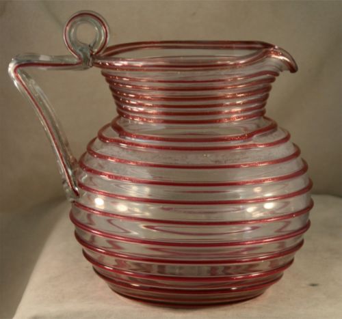 Old Blown Lutz Goldstone Threaded Pitcher Sandwich Possibly