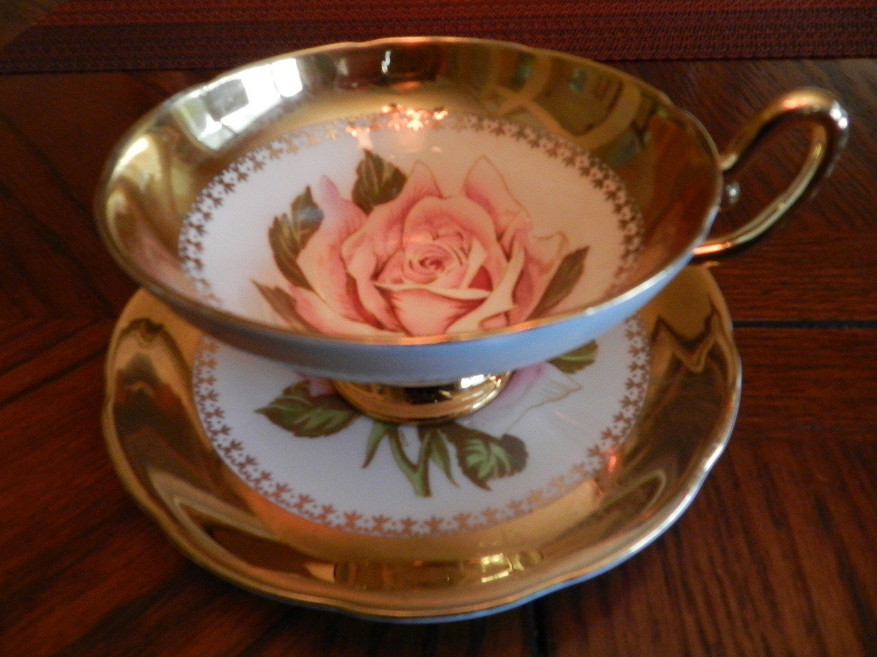 Taylor & Kent Cup & Saucer Large Pink Rose Thick Gold Trim England