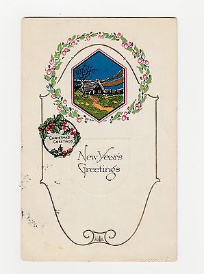 Vintage Postcard, New Year & Christmas, Art Deco Motif, Gibson Card, cancel 1921
