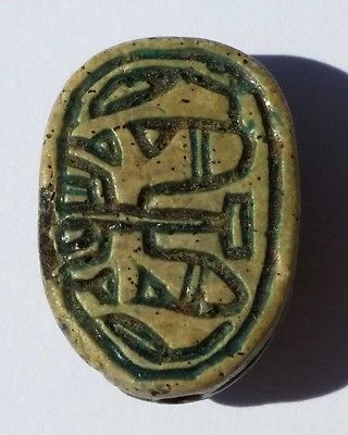 Genuine Ancient Eqyptian Faience Scarab Beetle 17mm Hieroglyphs Egypt 1600 B.C.